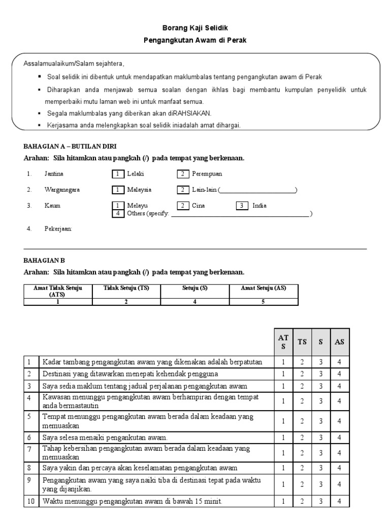 Contoh Borang Soal Selidik Pengangkutan Awam